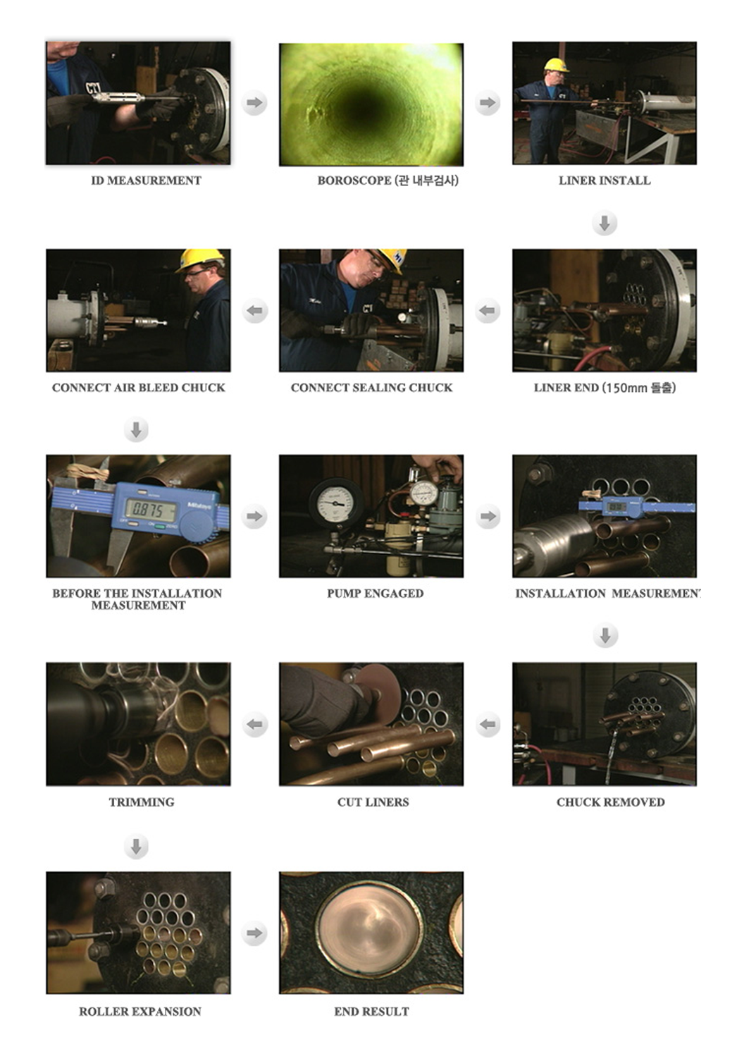 ¤ 기존 튜브 교체 작업은 소요 비용이 과다하고, 많은 공기가 소요되는 등 작업 진행간에 난해한 부분이 많았으나, Full Length Liner는 Plugging된 튜브나 교체해야만 하는 튜브를 다시 살리는 매력적인 선택이 될 수 있다.